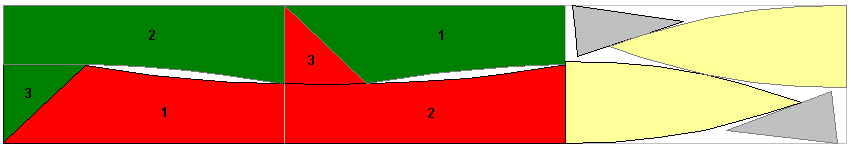 My aim has been producing dory plans, that would produce a good looking dory, that would be as big (in terms of length and displacement) as three sheets of plywood would make possible, and would make as nearly 100 % use of plywood as possible. Remember, I started this hobby with the one sheet design concept Prism, that makes a full 100 % use of a single sheet of plywood.