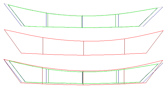 Compare these with the resistance curves of the original Little sister dory. The wave making resistance is lower now, so the new 3SD should be slightly lighter to row at speeds above 3 knots or so. |