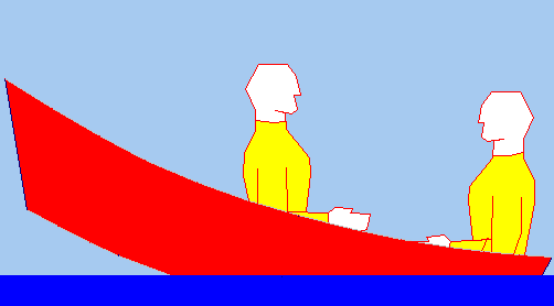 Niinpä, jos veneessä on kaksi henkeä, molempien pitäisi istua suunnilleen yhtä etäällä soutupenkistä. Mikä tyypillisellä penkkijärjestelyllä on mahdotonta.