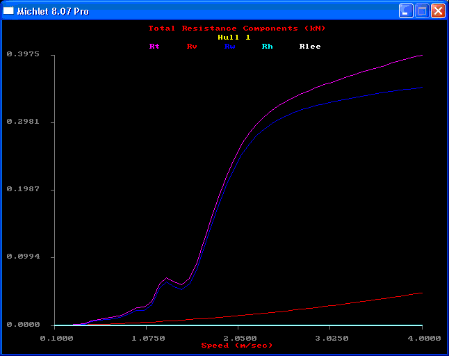 Tässäkin näkyy selvästi, että aallonmuodostusvastus dominoi yleensä aina pienessä veneessä. |