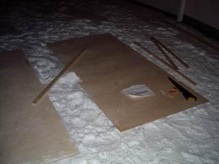 Vanerin sahaaminen kannattaa aina tehdä ulkona, vaikka sitten lumihangessa. Siivoaminen on paljon helpompaa ja ovenkarmit säästyvät kokonaisen levyn kolhuilta. |