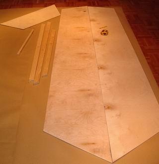 Sopivin materiaali tähän jollaan on 6.5 mm koivuvaneri. Se on sileää, vahvaa ja saatavana kaikkialla. Karkeasti ottaen voisi sanoa, että 6.5 mm vaneri sopii kaikkiin alle viisimetrisiin tällä tekniikalla tehtäviin veneisiin. 12 mm vaneria on kokeiltu tämän jollan rakentamiseen, mutta se on ehdottomasti liian paksua. 12 mm levy ei taivu jollan kyljiksi murtumatta.