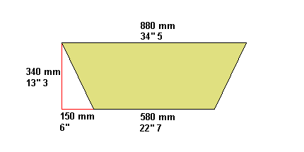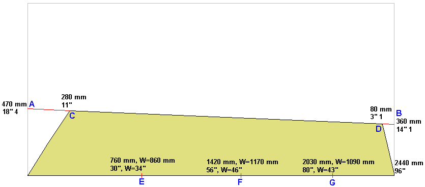 Pisteiden F välisen laudan pituus on 1170 mm, päät katkaistu 65 asteen