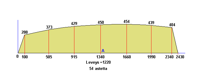 Valmiissa veneessä soutupenkin takalaita on jälleen merkin "A" alapuolella.