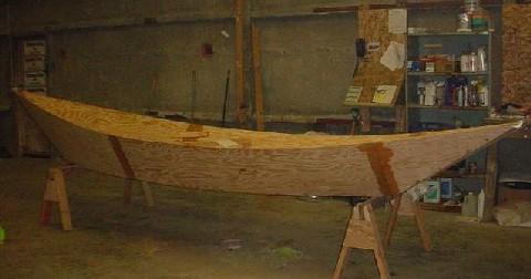 The boat is going to be painted on the outside, oiled on the inside. So the wood on the inside should be nice and clean, without holes or dents. For that reason, select the better side of the plywood to face the inside of the boat.