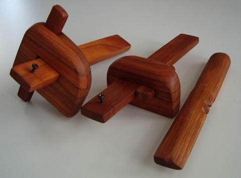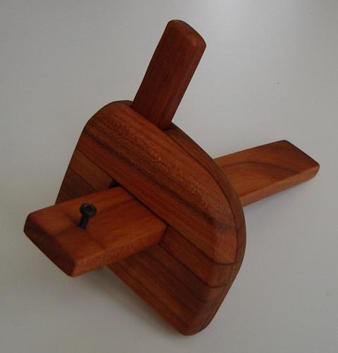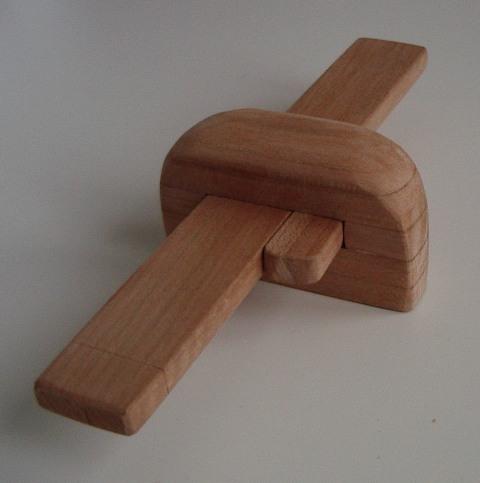 Hio puumurikka käteen mukavasti sopivaksi mylpyräksi. Hio yksi parkettipalikka puumurikan reijässä kevyesti mutta ei löysästi liukuvaksi piirtoaisaksi. Ja vuole ja hio toisesta parkettipalikasta 5-7 cm pituinen kiila, joka kevyesti painettuna tulee juuri ja juuri läpi puumurikan reijästä, kun piirtoaisakin on reijässä. Kiilan päihin voisi toki tehdä toispuoliset paksunnokset, jolloin kiila ei pääsisi putoamaan paikaltaan, ellei piirtoaisaa ensin vedä pois reijästä. Mutta en minä ainakaan viitsi. Ei se kiila mihinkään putoa ja huku. Tämä on työkalu, ei mikään kadulla riepoteltava juoppojen stressilelu. Jos kiila pyrkii hukkumaan, vikaa ei korjata työkalua monimutkaistamalla, vaan itsekuria kasvattamalla. |