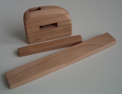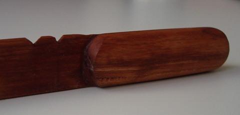 Runkomurikan aihio hiotaan jälleen hieman pehmeämpiin muotoihin, vaikkakaan tällä ei kyllä ole lopputuloksen käytön kannalta paljoakaan merkitystä. Hiotaan yksi palikka piirtoaisaksi, joka liikkuu kevyesti mutta ei löysästi piirtoaisan reijässä. Ja vuollaan ja hiotaan 7-10 cm pitkä kiila puumurikan kiilareikään. |