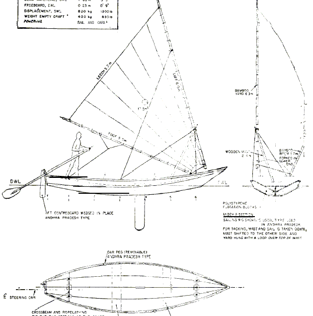 The length, about 15' (4.6 m), is selected for the ease of handling and plywood consumption. This type of boat varied a lot in the size, but basically with the same shape.
