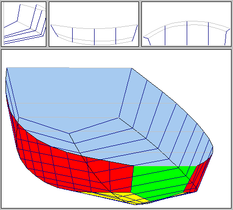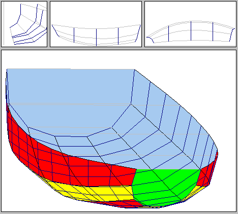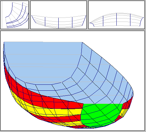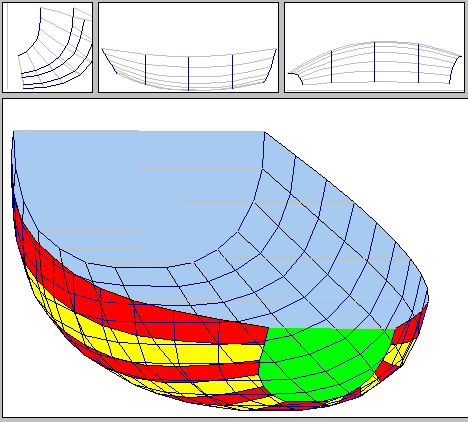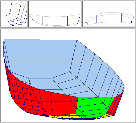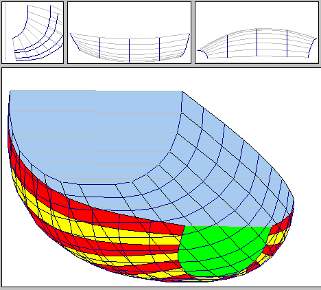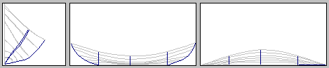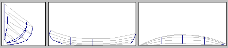 The Gokstad faering is curved in such a way, that it is impossible to produce a faithful representation of the complete boat with "Hulls". The steep sheerline upwards curvature in the bow and stern starts very close to the boat ends. Also, the plan view of the boat includes a rather straight mid section, turning to convex, and finally concave closer to the ends. Simply impossible to implement with only three frames, as in "Hulls".