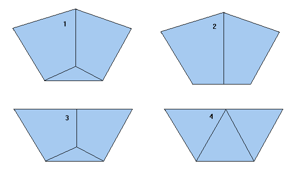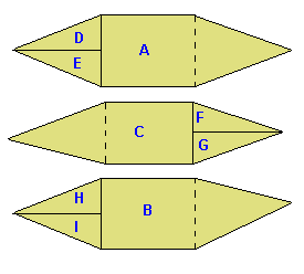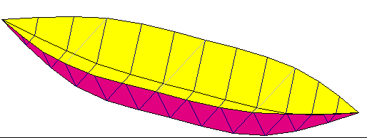Assemble the three logitudal strips first, round off the corners where the mid rectangle meets the end triangle, then assemble the complete hull.
