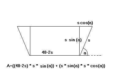 The easiest way to find out the optimum angle and width is to feed the area formula