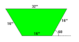 The overall optimum is given by an inclination of 60 degrees and a side width of 16" (and thus also a bottom width of 16"). With this combination the cross sectional area is 332.6 sq. in, or 2.3 sq. ft, giving a 15% improvement over the optimum square box.
