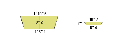 Cut both side strips in two, 1400 mm (55") from the end where the transom came from. Swap the pieces, and connect the wider ends of the strips using butt joints.