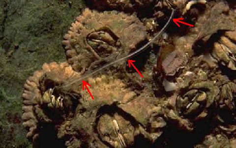 Viimeisessä toukkavaiheessa näkin toukalle muodostuu aistielimet oman lajin aikuisten erittämille "suunnistuskemikaaleille". Kemiallisten ohjausviestien perässä toukka osaa uida sinne, missä oman lajin aikuisia on ennestään. Ovela keino varmistaa hedelmöitymiskykyisen yhdyskunnan syntyminen. Veneen pohjaan :-(