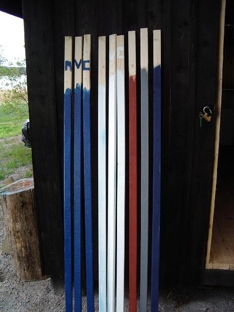 Sitten vaan maalaaman. Maalasin yhdeksän suunnilleen puolentoista metrin mittaista rimanpätkää kahteen kertaan, kahtena peräkkäisenä päivänä.