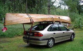 A length of two by four about twice the car height is a big help when topping and untopping the boat. It acts as a slide, protects the boat from accidental "rolls" and protects the car from the boat. The two by four should be carried along with the oars on top of the roofrack underneath the boat. You will need it "at the other end". |