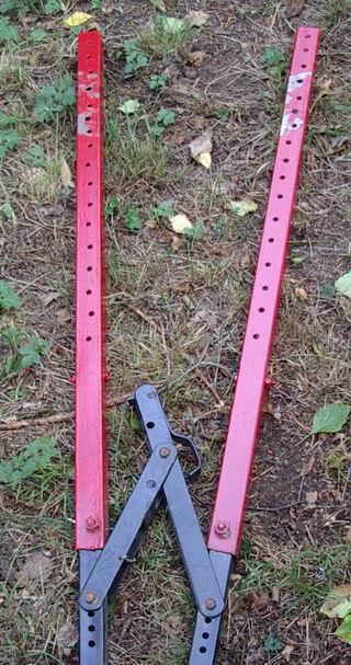 Drill holes through the extension tubings 2-3 cm (an inch or so) apart. I drilled 7 mm holes to later accept M6 bolts (around 1/4""). Paint the extensions.