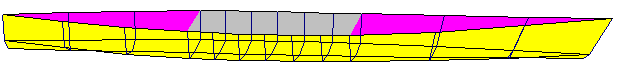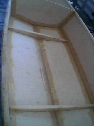 The bulkhead closer to the bow is 576 mm (1' 10" 5) wide on the top, 480 mm (1' 6" 7) at the turn of the bilge. Total height is 265 mm (10" 4), out of which 31 mm (1" 2) is the depth of the bottom V.