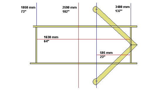 The bulkheads lie at 186 cm (73") and 348 cm (137") from the point of the bow.