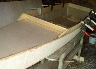 The seams have been filled and sanded. I've started to build a coaming around the cockpit to raise the outriggers high enough. The outriggers are going to be very simple ones. |