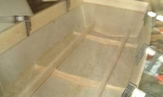 The low triangular pieces on the bottom of the sitting well will be the supports for the sliding seat rails. |