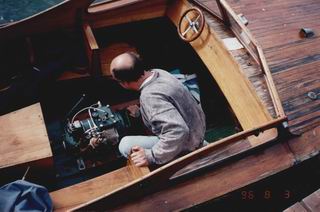 The chunk of cast iron I'm kneeling at is a Wickstrom W1 marine engine. Oh, if an