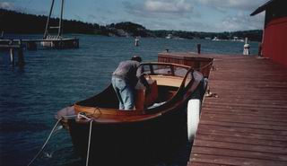 The boat has probably been built in the fourties. The construction is not that of a working fishing boat, rather a fishing style pleasure boat.