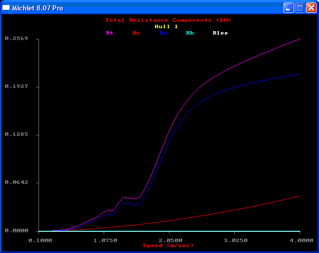 Rh (vaaleansininen käyrä) = perälaudan aiheuttama vastus