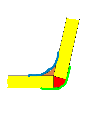 Mustia viivoja pitkin sahataan. Punaiset ovat apuviivoja. Niiden tilalle piirretään todelliset kaarevat viivat kuten yllä on neuvottu.