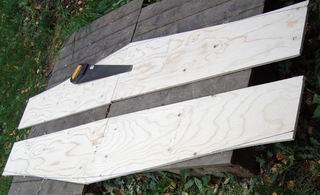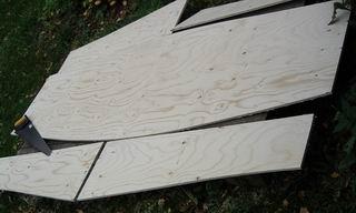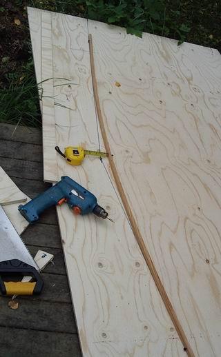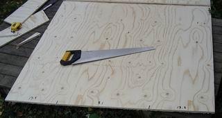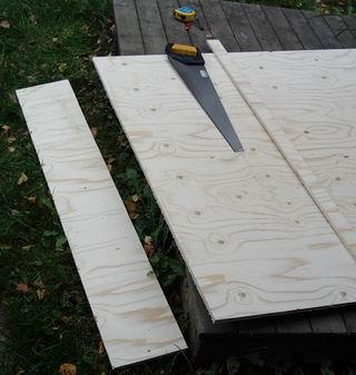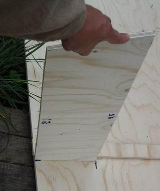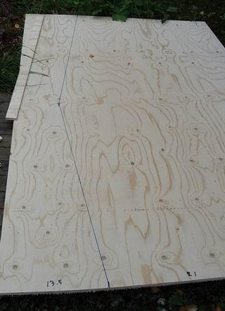 Merkkaa ja sahaa 20 cm viipale vanerilevyn toisesta päästä. |