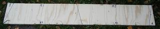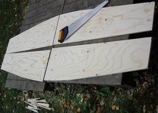 Merkka ja sahaa veneen perä- ja keulalaudat tästä levyviipaleesta. Mitat reunasta lukien 5 cm - 53.3 cm - 63.5. |