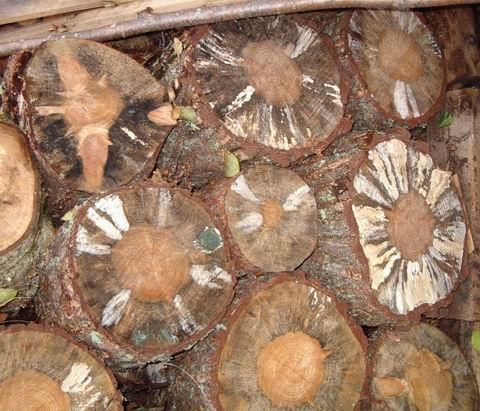|  | And some unchopped pine firewood. Sapwood grows fungi in all colours. And mind You, these logs have definitely not been fertilized, so this is not a symptom of "modern forestry".