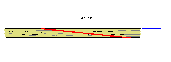 If a batten, plank or plywood is extended with a scarfed joint, the usual advice is to make the scarf lenght 8, 10 or 12 times the material thickness.