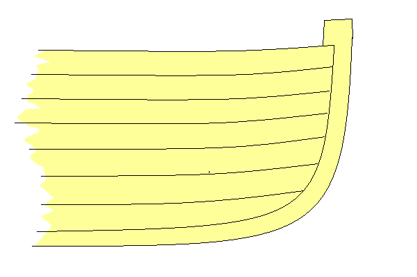 In a modern boat hull strakes meet the stems at more or less right angles. The ends of the strakes split, because the plumb attachment to the stem does not yield with stakes swelling or shrinking.