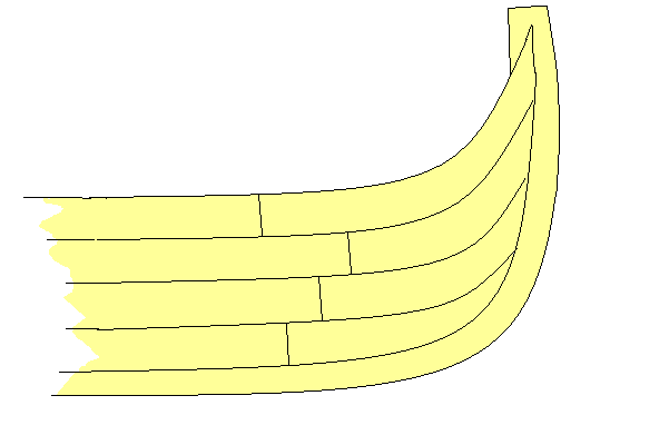 In a Viking ship the last stakes near the stems were carved out of naturally curved wood. This way the stakes meet the stems with grains almost parallel.